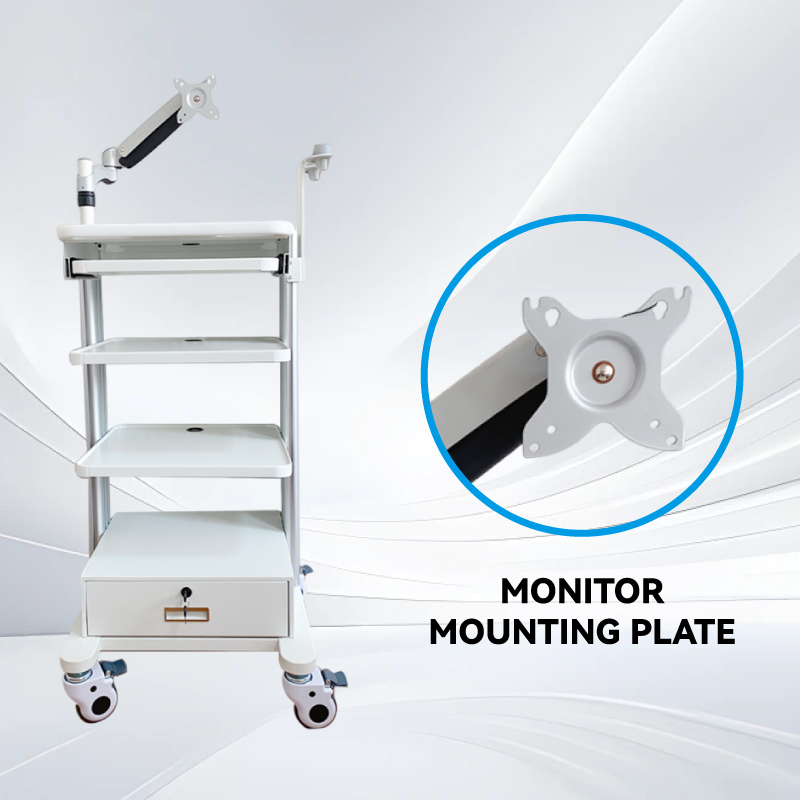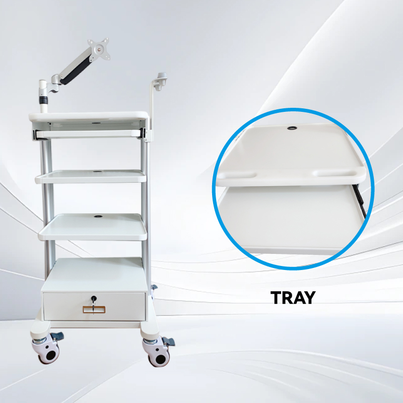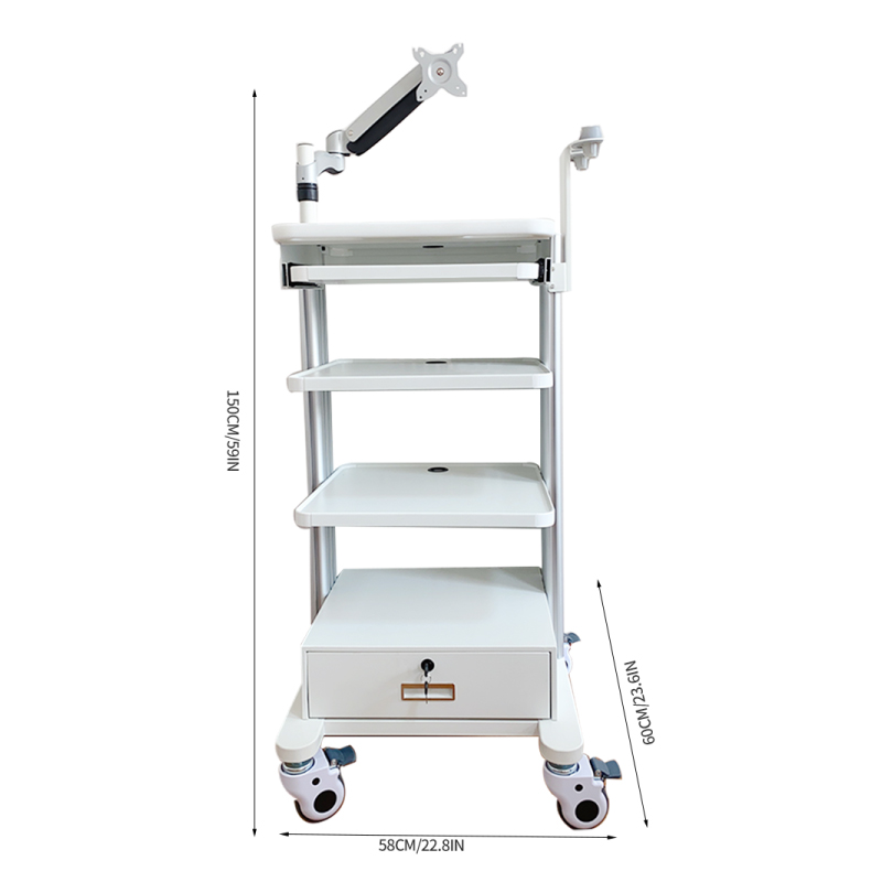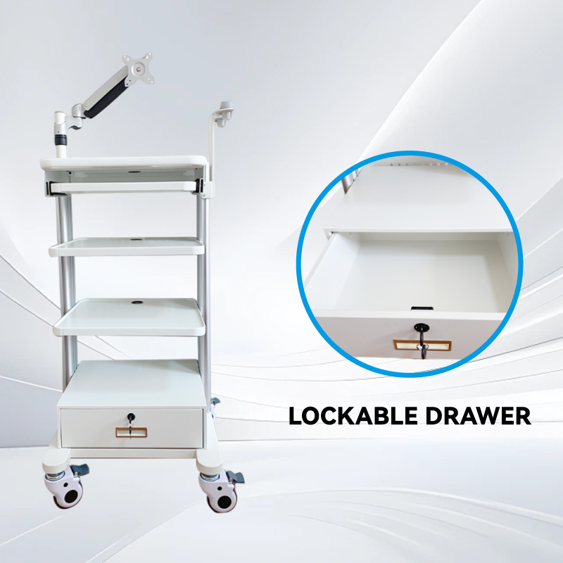Xe đẩy nội soi có khay 3 lớp, ngăn kéo và tay nâng khí