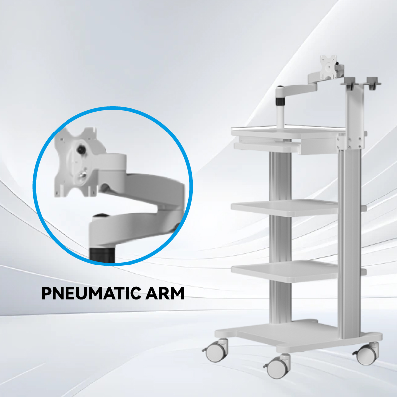 Tay đỡ lò xo khí nén giúp điều chỉnh vị trí dễ dàng cho màn hình hoặc thiết bị y tế. Xi lanh khí nén cho phép chuyển động theo chiều dọc và chiều ngang mượt mà, khóa chắc chắn ở bất kỳ độ cao và góc mong muốn nào. Điều này giúp tăng cường tính linh hoạt về mặt công thái học và hiệu quả quy trình làm việc trong môi trường lâm sàng, giảm thiểu căng thẳng khi sử dụng kéo dài.