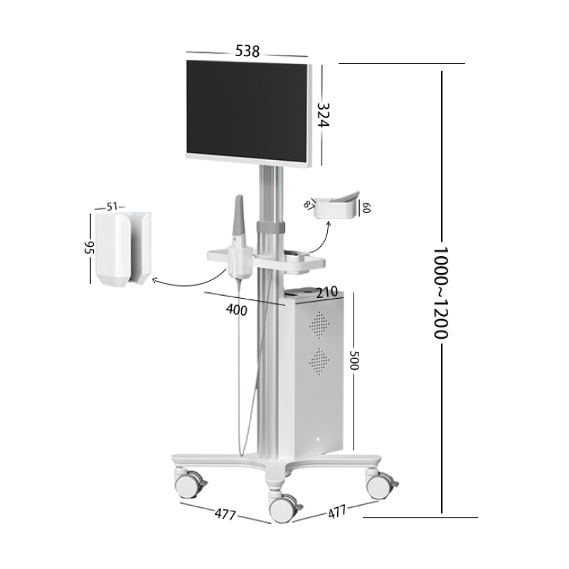 Đây là hệ thống máy quét răng trong miệng di động, tích hợp đầy đủ tính năng. Thiết bị được trang bị màn hình cảm ứng độ nét cao gắn trên một cánh tay điều chỉnh được, tay cầm máy quét nhỏ gọn và xe đẩy chắc chắn với bánh xe có khóa giúp dễ dàng di chuyển trong phòng khám, nâng cao quy trình lấy dấu kỹ thuật số.