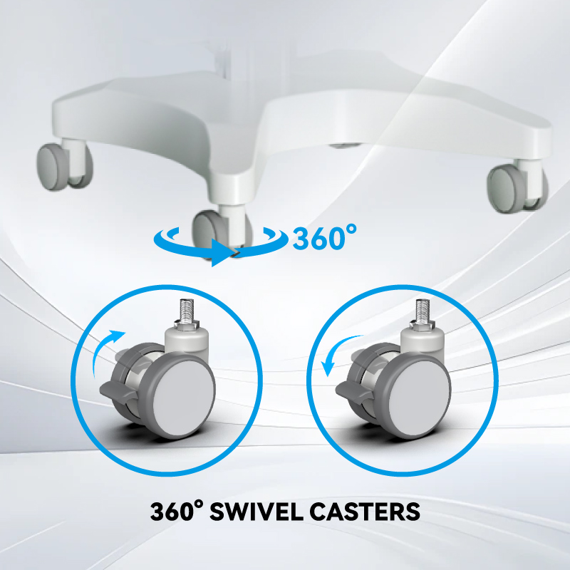 TCác bánh xe chịu lực này mang lại khả năng di chuyển mượt mà, đa hướng, giúp dễ dàng định vị thiết bị. Cơ chế khóa bậc đơn giản giúp cố định bánh xe chắc chắn, đảm bảo độ ổn định tuyệt đối trong suốt quá trình phẫu thuật. Lý tưởng cho xe đẩy y tế và nha khoa đòi hỏi khả năng di chuyển nhẹ nhàng và khóa an toàn.