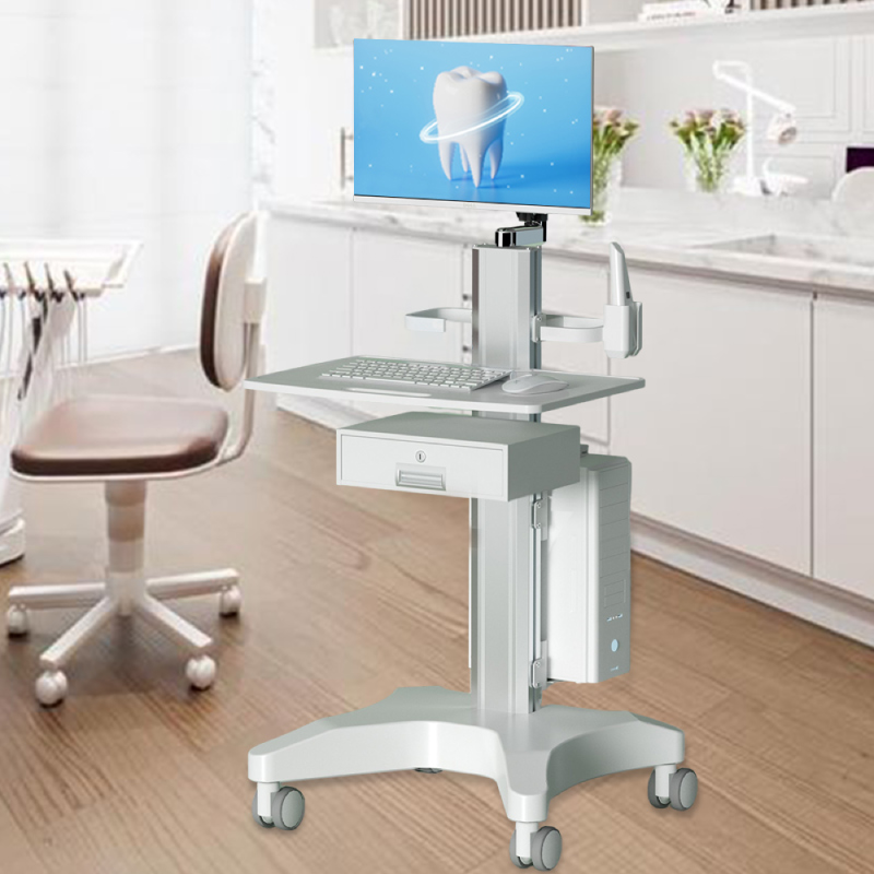 Xe đẩy nha khoa di động có giá đỡ máy tính xách tay & ngăn kéo máy quét miệng