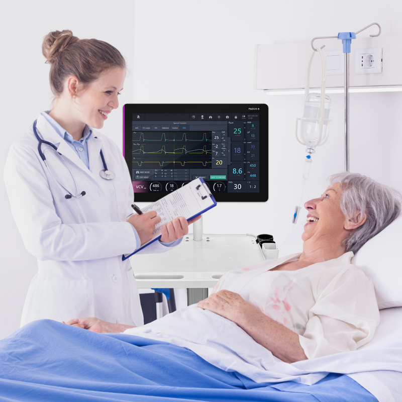 Xe đẩy y tế di động cao cấp có giá đỡ màn hình, xe đẩy điều dưỡng điều chỉnh độ cao dành cho bệnh viện và phòng khám.