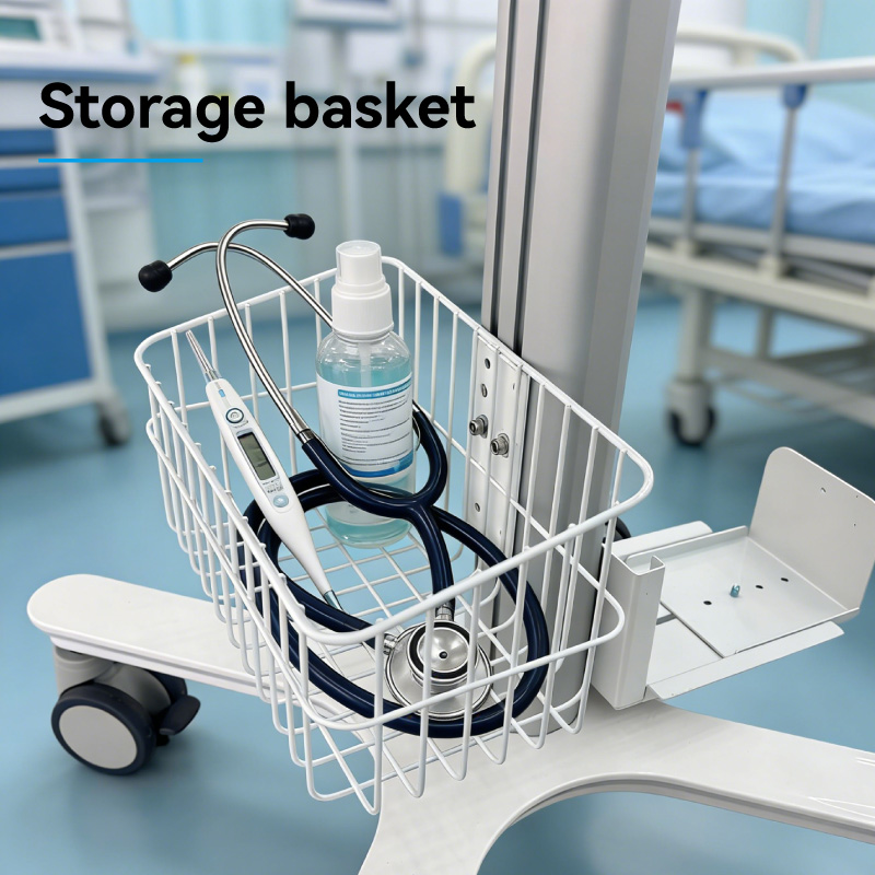 Xe đẩy này đi kèm với giỏ lưới mở chắc chắn, giúp dễ dàng quan sát và lấy các vật dụng được cất giữ. Nó cung cấp không gian rộng rãi để sắp xếp dụng cụ nha khoa, vật tư y tế tiêu hao, phụ kiện và đồ dùng hàng ngày, giúp duy trì một khu vực làm việc sạch sẽ và gọn gàng. Thiết kế dạng lưới mở cho phép nhận diện và lấy đồ nhanh chóng, giúp tối ưu hóa quy trình làm việc và nâng cao hiệu quả lâm sàng tổng thể.